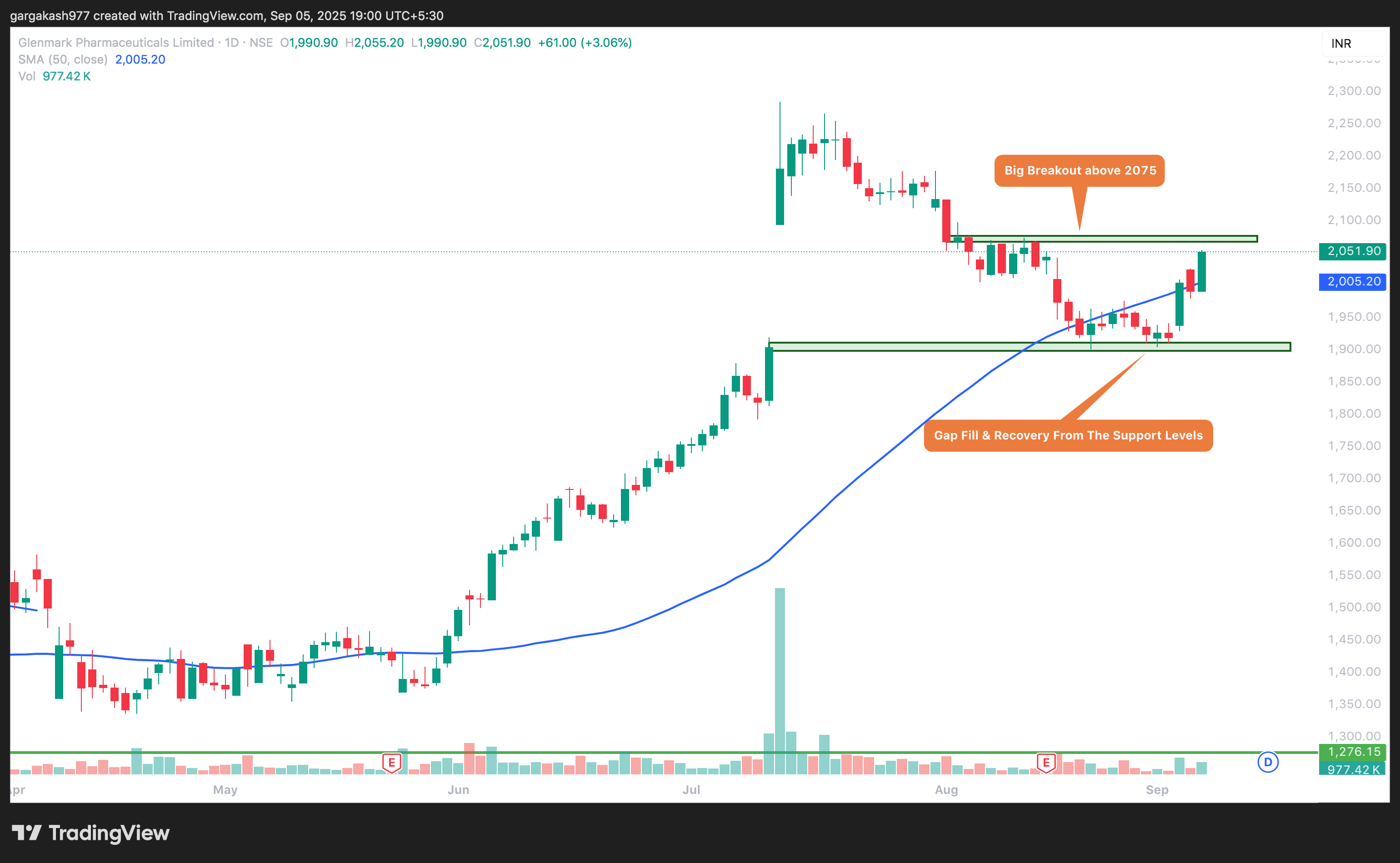 The pharma space is looking strong, and Glenmark has positioned itself well within this trend. The stock recently filled the gap on its chart and bounced back sharply from strong support zones. With the sector tailwind and a healthy recovery in price action, Glenmark looks ready to fly higher, making it a strong pick among mid-cap pharma names.